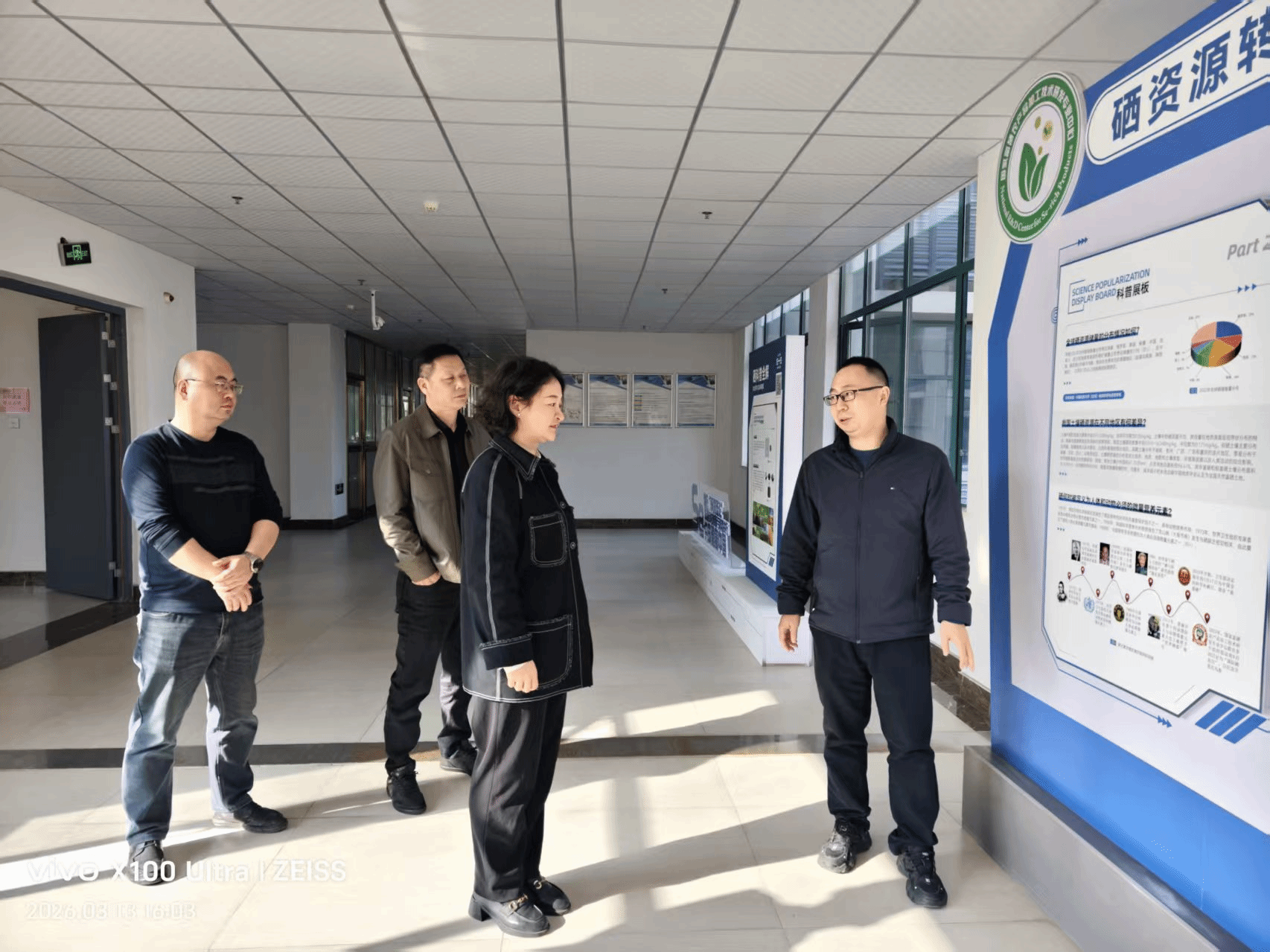 3 月 11 日,武汉市东西湖区东山街道党工委副书记、办事处主任杨晓玥率队到访硒产业学院,就富硒农业项目合作开展考察交流。学院党委书记李辉、执行院长祝振洲、党委副书记张蕾热情接待考察团一行,富硒种质资源开发与评价科研团队负责人程华及学院相关工作人员一同参加本次交流活动。